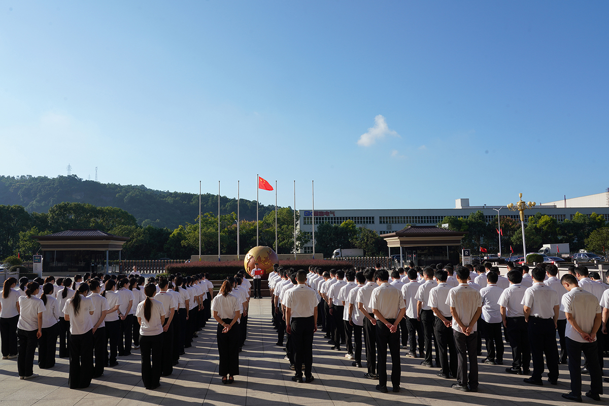 7时许,升旗仪式正式开始。伴随着雄壮的《义勇军进行曲》,鲜艳的五星红旗在朝阳映照下冉冉升起,全体人员庄严肃立、行注目礼,齐声高唱国歌,表达对祖国的无限热爱与自豪。
