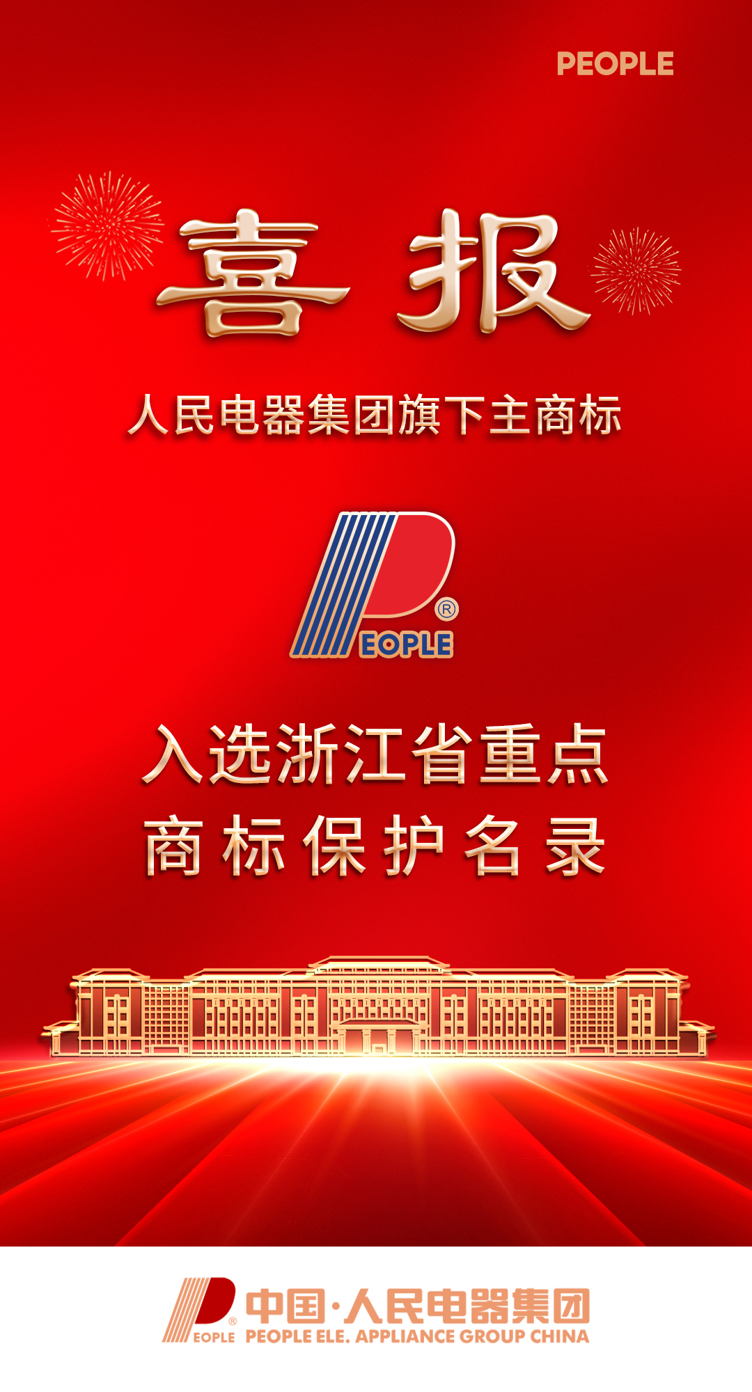 近日,浙江省市场监督管理局正式公布了浙江省重点商标保护名录,人民电器集团旗下主商标PEOPLE凭借其卓越的品牌价值和影响力,成功入选该名录。